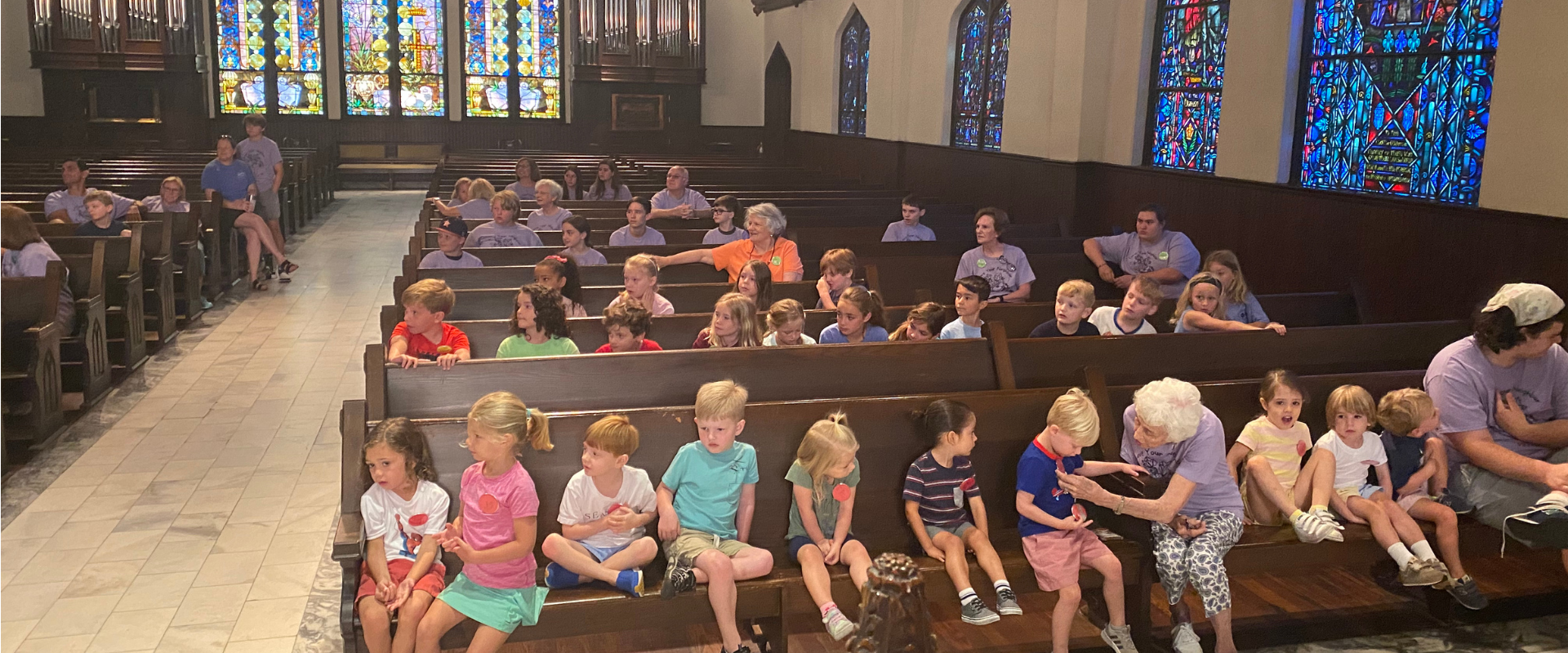Every Sunday during our 10:30 a.m. worship service, younger children are invited to participate in Children’s Chapel, where they experience age-appropriate religious formation, art activities, and games. They rejoin their families later on during the service for communion and prayers.