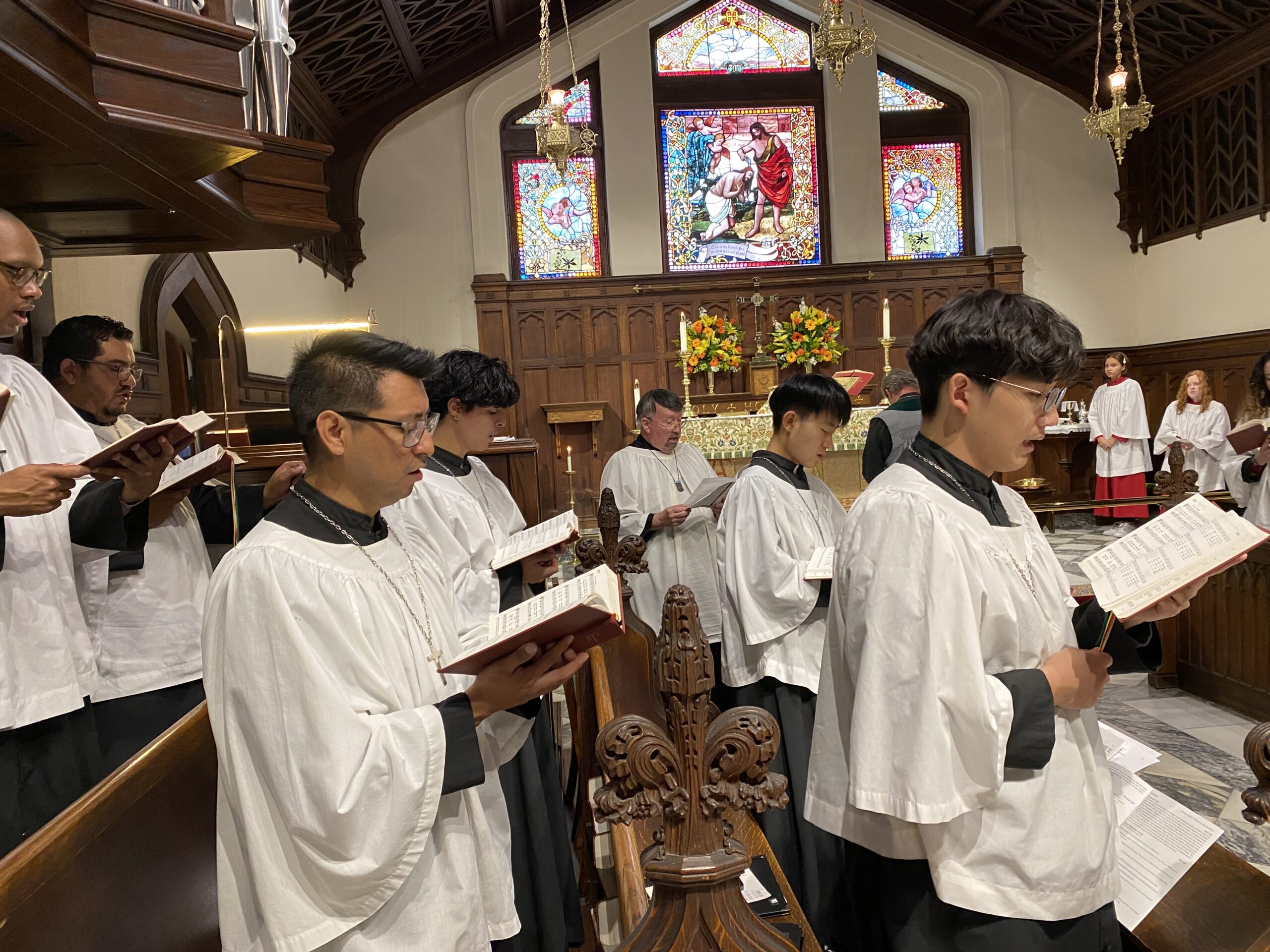 During the 10:30 worship service on Sundays throughout the year, the men and women of the Trinity choir share their talents and fill our nave with a wide-ranging repertoire of sacred music. Trinity’s choir pursues a high standard of excellence while leading the congregation in worship. The choir is composed of volunteer parishioners as well as students from the Schwob School of Music at Columbus State University. Student members of the choir are supported in part by scholarships generously funded by members of the congregation.